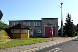 Another building that characterized the townscape of Prieschka was the former Zum Elstergrund inn, which stood opposite the red brick building of the former Prieschka school, built in 1902. In 1768, the farmer Funke built an inn called Zum goldenen Hirsch on the same site. In 1839 the inn and other buildings on the estate burned down completely, and in 1841 a new building was erected and the inn was given its present name. In 1929, a flat building was added to the left side of the pub. From 1967 the pub was owned by the Consumers' co-operative, which also opened a shop there. The pub was closed after the reunification[43] and the unused building was demolished in 2022.