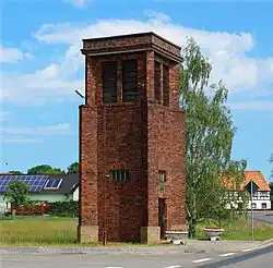 Two buildings in Prieschka are listed as historical monuments in the Elbe-Elster district: a half-timbered house built in 1827 at 62 Dorfstraße and the Prieschka bell tower at the intersection of Würdenhainer Straße and Dorfstraße, which was donated in 1929 by the brothers Georg and Julius Müller from Leipzig, who were born in Prieschka. They donated 5,000 marks for the purchase of two bells and were made honorary citizens of the village.[37][38]