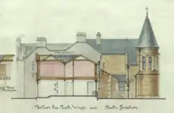 The estate, originally an outlying property of Crawford Priory, was purchased from the Earl of Glasgow by a wealthy merchant, James Martin Esq. in 1889.[1] In 1892, he aggrandized the existing house by the addition of a substantial East Wing, comprising a first floor Billiards Room, a conical tower and a large Dining Room. In addition to this, the existing Service Wing was expanded to accommodate a larger domestic staff. The architect for the work was James Ross Gillespie of Gillespie & Scott of Queen Street, St Andrews.[2] The same architect was responsible for the construction of the extensive Priestfield Maltings nearby.[3]