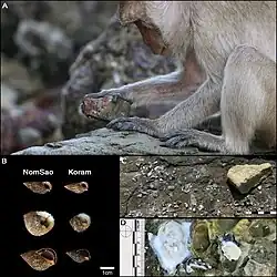 - ^ a b c Proffitt, Tomos; Reeves, Jonathan S.; Braun, David R.; Malaivijitnond, Suchinda; Luncz, Lydia V. (2023). "Wild macaques challenge the origin of intentional tool production". Science Advances. 9 (10): eade8159. Bibcode:2023SciA....9E8159P. doi:10.1126/sciadv.ade8159. PMC 10005173. PMID 36897944. S2CID 257437132.