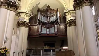 The instrument underwent a restoration costing 2,515 million pesos, which was financed by the Colombian Ministry of Culture, the National Tourism Fund (Fontur) and the Archdiocese of Bogotá.[15] The restoration was carried out between 2013 and 2016 and was entrusted to the Spanish organ company Gerhard Grenzing S.A., which has also intervened on the organs of the cathedrals of Seville, Brussels and Mexico, among others.[15] Finally, the inauguration of the organ took place on July 2, 2016, with the Blessing of the instrument by Cardinal Rubén Salazar Gómez and an inaugural concert presided over by the Spanish maestro Juan de la Rubia, titular organist of the Sagrada Família in Barcelona (Spain).