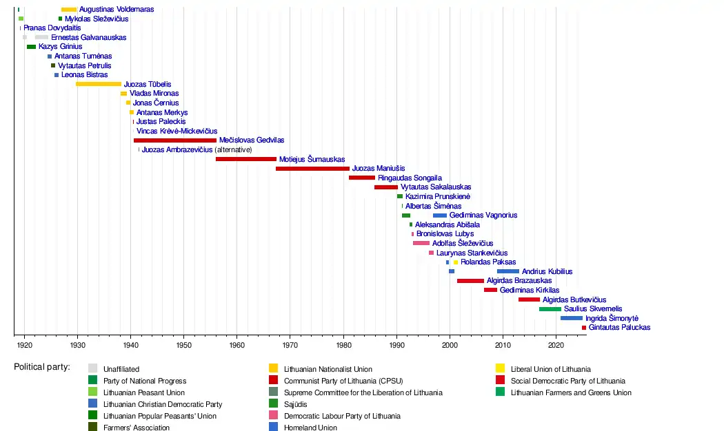 - ^ a b c "Ankstesnės Vyriausybės. Laikotarpiu 1918–1940". Government of the Republic of Lithuania. Archived from the original on 24 March 2022. Retrieved 9 May 2016.