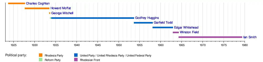 1 October 1923 | 28 August 1927 | 3 years, 331 days | 1924 (1st) | Rhodesia Party |
