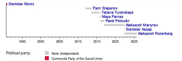 17 December 2016 | 26 May 2022 | 5 years, 160 days | Independent | Vadim Krasnoselsky![]() (2016–present) | ||