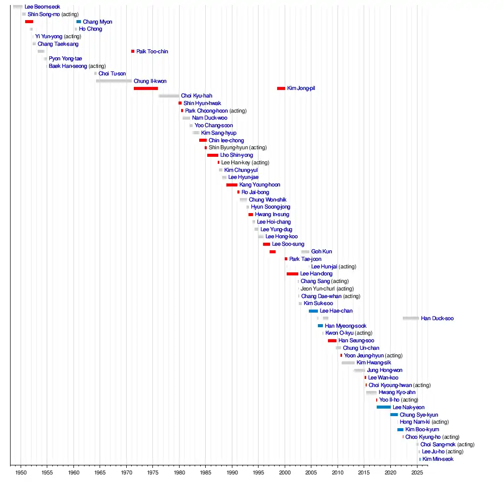 3 July 2025 | Incumbent | 49 days | Democratic | ![]() Lee Jae Myung |