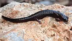 The primeval splayfoot salamander (Chiropterotriton priscus), also known as the primeval flat-footed salamander, is a species of salamander in the family Plethodontidae. It is endemic to Mexico and known from near its type locality on Cerro Potosí in Nuevo León as well as from adjacent Coahuila, at elevations above 3,000 m (9,800 ft) asl.[3] Its natural habitats are pine and pine-fir forests. It is a terrestrial species found under fallen logs and under bark.[1]