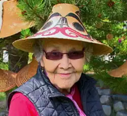 Primrose Adams (1926 – January 2020) was a Canadian First Nations artist and member of the Raven Clan from the Haida nation.[1][2] She wove hats and baskets in the Haida method and is most notable for her spruce root basketry, which involves working in the traditional manner of collecting and dyeing her own spruce root.[3][4] Adams died in January 2020.[5]