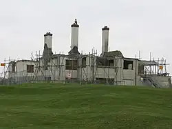 The present-day 27-hole layout is the result of a 1950 re-design following war-time damage to the original course. World War II was very hard on Prince's, but Australian entrepreneur Sir Aynsley Bridgland intervened, engaging Sir Guy Campbell and John Morrison to re-design and restore the course. The new layout incorporated 14 of the original greens (but with most played from different directions to the original course), and eliminated any blind tee or approach shots. The re-design always envisaged a centrally located clubhouse, and this was finally opened in 1985 by Peter Alliss, allowing the 27 holes to be played in three loops of nine holes, known as “Shore”, “Dunes” and “Himalayas”, each starting and finishing beside the new clubhouse.