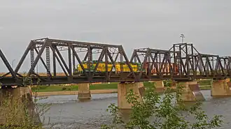 OmniTRAX, an American shortline railway company, bought the former CN line and named it Carlton Trail Railway (CTRW or CTR). Currently, Carlton Trail Railway resides in the old CN yard, storing tank cars for CN, transporting grain, and refurbishing diesel engines for other OmniTRAX lines. Carlton Trail has recently discussed abandoning several parts of the shortline due to increasing costs and poor track condition. The Railroad bridge in Prince Albert had the ability to turn in on itself to allow ferry ships to pass through.[54] In 2001 CTRW announced the abandonment of the Birch Hills branch line, but the city of Prince Albert intervened, citing the possibility of an ethanol plant. In 2008 Carlton Trail announced the Meadow Lake line would be abandoned by April 1, 2009.[55] Carlton Trail primarily operates EMD GP10s for switching and long-haul transport.