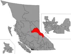 As of the 2020 provincial election, Prince George-Valemount comprises the southern portion of the Regional District of Fraser-Fort George, located in east-central British Columbia. The electoral district contains the communities of Valemount, McBride, and the southeastern portion of Prince George. The boundary line within the city of Prince George comes from the east following along the Fraser, and then the Nechako River to the John Hart Bridge where it goes south along Highway 97, west along Massey Drive, south along Ospika Boulevard until Ferry Avenue. The boundary then cuts west to just south of the University of Northern British Columbia before travelling south down Tyner Boulevard, then follows Highway 16 out of the city to the west.[1]