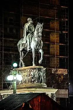 Prince Mihailo Monument (Serbian: Споменик кнезу Михаилу, romanized: Spomenik knezu Mihailu) is a monument of Prince Mihailo. It is located in the main Republic Square in Belgrade, Serbia, and was erected in 1882. It was the first public monument with representation of an equestrian figure of a ruler in Serbia. The monument is by Italian sculptor Enrico Pazzi. Reliefs on the monument were performed according to the drawings of architect Konstantin Jovanović. The monument was declared a Monument of Culture of Great Importance in 1979 and it is protected by Republic of Serbia,[1] as the oldest and the most representative figural Serbian memorial.[2]