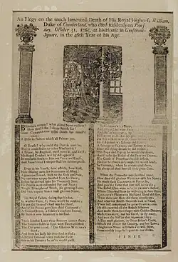 Elegy on the much lamented death of His Royal Highness William, Duke of Cumberland..