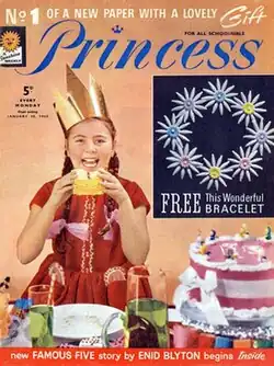 Princess (also known as Princess and Girl and Princess Magazine) was a British weekly girls' comic anthology published by Fleetway Publications and, later, IPC Magazines. The first version was published between 30 January 1960 and 16 September 1967,[a] and featured a mix of comic strips, text stories and a large proportion of features; it was merged with Tina to form a new title - Princess Tina - after 399 issues.