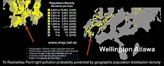 Displays of Aurora Australis are currently able to be seen from this locality, as the light pollution is shielded to some degree by the range of hills along the coastline.