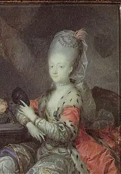 Princess Louise was considered the most beautiful and spirited of Frederick V's children, but also the most reserved.[4] She was Christian VII's favorite sister, and he was already from childhood strongly attached to his "Louison," as he called her.[4][5]