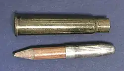 The standard gift (referred to as the smokers gift in some post war publications) consisted of the box itself, twenty cigarettes in a yellow monogrammed wrapper, an ounce of pipe tobacco, a pipe, a Christmas card and a photograph of Princess Mary.[5][11][12] It was meant to also include a tinder lighter, but a shortage of these meant that in the case of the army they were often substituted with other gifts and those in the navy received a bullet pencil.[5] The bullet pencil consisted of a silver tipped pencil (either sterling silver or nickel silver) in a case made from a spent .303 cartridge recovered from UK firing ranges and marked with an M.[13]