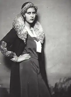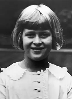 Sophie and her relatives made frequent stays abroad, and in particular in the United Kingdom.[61] In 1923, the princess was invited to London to be a bridesmaid at the wedding of her aunt Louise Mountbatten to the future Gustav VI Adolf of Sweden.[67] She returned to England in 1925 for the funeral of her great-aunt, Queen Alexandra.[68] In 1926, she went to Italy for the funeral of her paternal grandmother, Queen Olga.[69] A few weeks later, she returned to spend the summer in Great Britain, with her maternal grandmother, the Dowager Marchioness of Milford Haven.[6]