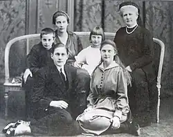 Princess Vera Konstantinovna of Russia was born at Pavlovsk on 24 April 1906. She was the youngest child among the nine children of Grand Duke Constantine Constantinovich of Russia and his wife Grand Duchess Elizabeth Mavrikievna, born Princess Elizabeth of Saxe-Altenburg. She was going to be named Marianne in honor of her mother's favorite sister, Princess Marie Anne of Saxe-Altenburg, but her paternal aunt Grand Duchess Vera Constantinovna of Russia insisted that her niece should be named after her.[2] Her godparents were her brother Prince Constantine Constantinovich of Russia and Empress Alexandra Feodorovna. Vera Constantinovna spent her first years in fabulous splendour during the last period of Imperial Russia. Her father, a respected poet, was a first cousin once removed of Tsar Nicholas II.