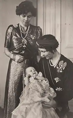 Princess Victoria Louise was born on 13 September 1892 at the Marmorpalais in Potsdam, the seventh child and only daughter of German Emperor Wilhelm II and Empress Augusta Victoria.[1] "After six sons, God has given us our seventh child, a small but very strong little daughter," the empress wrote in her diary soon after the birth.[2] The princess was baptised in the Marble Gallery of the New Palace in Potsdam on 22 October, the birthday of the empress.[1][3] She was named Victoria after her paternal great-grandmother, Queen Victoria, and Luise after her paternal great-great-grandmother, Louise of Mecklenburg-Strelitz.[4] Known officially as Victoria Louise, she was nicknamed "Sissy" by her family.[5]