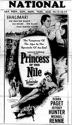 Princess of the Nile is a 1954 American adventure film directed by Harmon Jones and starring Debra Paget, Jeffrey Hunter and Michael Rennie. It was shot in technicolor and distributed by 20th Century Fox. Originally conceived as a more lavish film, it ended up produced as a second feature.