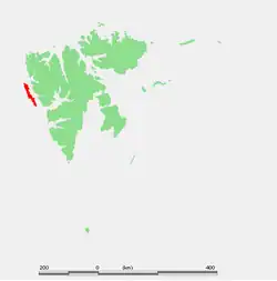 Prins Karls Forland or Forlandet, occasionally anglicized as Prince Charles Foreland, is an island off the west coast of Oscar II Land on Spitsbergen in the Arctic archipelago of Svalbard, Norway. The entire island and the surrounding sea area constitutes Forlandet National Park (Forlandet nasjonalpark).[1][2]