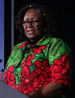 In July 2019, she was arrested in connection with $94 million that was missing from a pension fund.[10] She was the first ZANU–PF minister to be arrested by the new President Emmerson Mnangagwa.[11] She did not lose her place in the cabinet for two weeks.[12] She spent two months in jail before she was released on bail in September 2019. Meanwhile, a former vice-president, Phelekezela Mphoko, was also arrested for alleged corruption.[13]