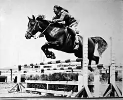 Priscilla Paetsch (sometime referred to as Mrs. Gunther Paetsch) not only trained and raised Purebred Arabian horses but she participated in many shows like the 1965 Broadmoor Arabian Show. In this show she modeled native Bedouin costumes similar to those worn in the deserts of Arabia the only thing different is that in Arabia, horses were kept for war purposes (soundness, speed, stamina, endurance and intelligence)[18] and only men were allowed to ride them. The woman were confined to camels. At the same time she was also an artist, her paintings of horses, like the one called "the parents of her horse Zunet" inspired others to request her to design programs and high point trophy buckles and posters.[19][20]