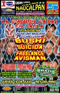 | 5 | Avisman defeated Suicida Also in the match: Bushi and Freelance | 4-way Prisión Fatal steel cage match, Lucha de Apuestas, hair vs. hair match[4] |