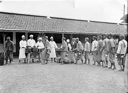 Taiwanese prisons typically serve simple meals.[32] Breakfast in some prisons may include soy milk and rice rolls.[32] Lunch and dinner may include rice, vegetables, fish, and meat.[33] One prison in Taichung serves up to 4 and 1/2 tons of rice to the inmates every day.[32] This amounts to just 500g of rice per prisoner per day plus some vegetables or fish.[32]