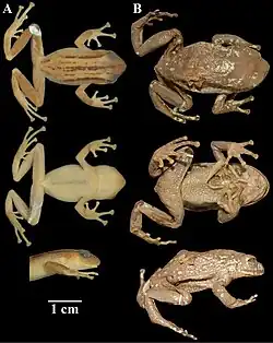 | The holotype of Pristimantis riveti (right), an adult female | |
