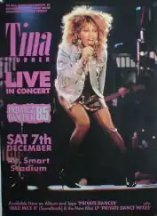 The two March 1985 shows at Birmingham, England's NEC Arena were filmed and released as Tina Live: Private Dancer Tour. The VHS release featured special guests Bryan Adams and David Bowie.