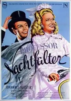 Professor Nachtfalter is a 1951 West German comedy film directed by Rolf Meyer and starring Johannes Heesters, Jeanette Schultze and Maria Litto.[1] The film's sets were designed by the art director Franz Schroedter. The film was made at the Bendestorf Studios and partly shot on location at Lake Constance. The film's sets were designed by the art director Franz Schroedter. It cost around 900,000 Deutschmarks to make.