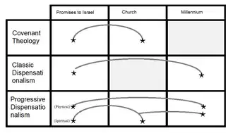 In Evangelical Christian theology, progressive dispensationalism is a variation of traditional dispensationalism.[1] All dispensationalists view the dispensations as chronologically successive. Progressive dispensationalists, in addition to viewing the dispensations as chronologically successive, also view the dispensations as progressive stages in salvation history.[2]: 127 The term "progressive" comes from the concept of an interrelationship or progression between the dispensations. Progressive dispensationalism is not related to any social or political use of the term progressive, such as progressive Christianity.