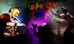 The network was centred on Rich Batsford, Marc Reck, Anne-Marie Pope and Ant Ramm,[1][2][3] who become friends during shared participation in various creative endeavours including the Fierce! festival and the music and party scene based in and around the Birmingham suburb of Moseley. Their intention was to create a new form of live event enabling each participant to further their own practice, as well as to learn from engaging with other disciplines.[1] The show would involve and engage the audience at different levels, leading them on a potentially transformative journey.