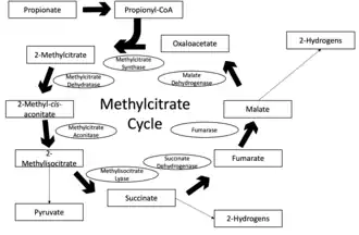 - ^ a b Dolan SK, Wijaya A, Geddis SM, Spring DR, Silva-Rocha R, Welch M (March 2018). "Loving the poison: the methylcitrate cycle and bacterial pathogenesis". Microbiology. 164 (3): 251–259. doi:10.1099/mic.0.000604. PMID 29458664.