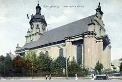 As part of his investiture as Duke of Prussia in Warsaw in 1611, Elector John Sigismund agreed to the building of two churches for Catholics in mostly Protestant Königsberg. Ultimately, only one was successfully built. Construction began immediately in 1612 in the Sackheim district, on land belonging to the Königsberg Castle, which before the Reformation had been part of the Samland diocese.[1] The church was built in years 1614–1616, its architect was Nicholaus Rambas.[2]