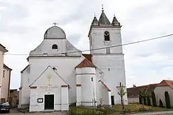 The main landmark of Prosiměřice is the Church of Saint Giles. It was built in the early Gothic style in the second half of the 13th century. In 1543 and in the 19th century, it was rebuilt into its present form.[6]