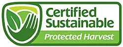 Protected Harvest is an American non-profit organization headquartered in Soquel, California that certifies sustainably grown crops. The goal of the organization is to provide a standard measurement of what constitutes a sustainable product and use it to assure retailers and consumers that they are pucharsing sustainably grown items. Protected Harvest was founded in 2001 as an independent non-profit organization and merged into SureHarvest in 2008.[1][2] According to EcoLabeling.org, a non-profit monitoring certification programs, "Protected Harvest is an eco-label with the stated mission of helping farmers meet environmental standards that yield high quality products and preserve healthy land for future generations."[3] Pest-management in particular is among the specialties of Protected Harvest, according to Consumer Reports.[4]