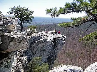 The protected areas of North Carolina cover roughly 3.8 million acres, making up 11% of the total land in the state.[1] 86.5% of this protected land is publicly owned and is managed by different federal and state level authorities and receive varying levels of protection.[1] Some areas are managed as wilderness while others are operated with acceptable commercial exploitation.[1] The remainder of the land is privately owned, but willingly entered into conservation easement management agreements, or are owned by various nonprofit conservation groups such as the National Audubon Society and The Nature Conservancy.[1] North Carolina contains 1 National Park, and various other federally owned protected land including 2 National Seashores, 5 National Forests, 12 Wildlife Refuges, and the southern half of the Blue Ridge Parkway. North Carolina has an extensive state park system of 42 open units, 35 of which are state parks, 4 that are recreation areas, and 3 staffed state natural areas, along with other designated units managed by the North Carolina Department of Natural and Cultural Resources.[2]