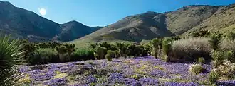 Kern and Tulare counties | 1994[50] | 74,060 acres (115.72 sq mi; 299.7 km2) | 3,120–8,453 ft (950–2,576 m)[22] | At nearly 8,500 feet, Owens Peak is the highest point in a cluster of subsidiary ranges at the interface between the Mojave Desert and the bulk of the Sierra Nevada. Receiving only light use, this area remains relatively pristine. It is a haven of ecological diversity, and is home to a number of notable large fauna such as the black bear, mule deer, golden eagle, mountain lion, and prairie falcon. In addition to the widespread sagebrush and pinyon-juniper woodland, two plant species are also noted as local to the area: the Nine Mile Canyon phacelia and the monkey flower.[50] |