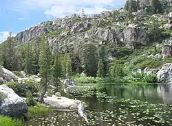 Placer County | 1984[35] | 25,680 acres (40.13 sq mi; 103.9 km2)[36] | 5,000–9,006 ft (1,500–2,745 m)[35][22] | The headwaters of the American River rise in the highlands to the west of Granite Chief, a highly prominent peak that also overlooks the Palisades Tahoe ski area to the east. The Five Lakes Basin, accessible by day hike from a trailhead near Alpine Meadows, is a popular area that is also traversed by the Pacific Crest trail. The forest is dominated by lodgepole and red fir at upper elevations, and a more varied mixture of conifers and deciduous trees at the lower elevations around 5,000 feet. French Meadows, in the northwest of the wilderness area, is further protected as a game refuge.[23] |