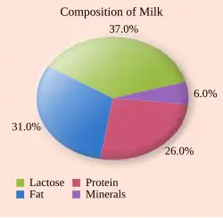 Protein adsorption can also occur as a direct result of heating a mixture. Protein adsorption in milk processing is often used as a model for this type of adsorption in other situations. Milk is composed mainly of water, with less than 20% of suspended solids or dissolved proteins. Proteins make up only 3.6% of milk in total, and only 26% of the components that are not water.[13] These proteins are all responsible for fouling that occurs during pasteurization.