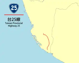 Provincial Highway 25 is a Taiwanese highway that starts from Fengshan and ends in Linyuan, both in Kaohsiung City. The highway is also known as Fenglin Highway (鳳林公路). The route length is 18.275 kilometres (11.356 mi).[1]