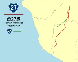 Provincial Highway 27 is a Taiwanese highway that starts from Liouguei, Kaohsiung City and ends in Xinyuan, Pingtung, Pingtung County. The highway connects the inland townships in Kaohsiung and Pingtung to the southern coasts of Taiwan. The route length is 79.174 kilometres (49.196 mi) .[1]