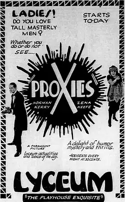 - ^ "Proxies: Program Offering that Is Mildly Entertaining". Film Daily. 16 (17). New York City: Wyd's Films and Film Folks, Inc.: 10 April 17, 1921. Retrieved March 19, 2014.