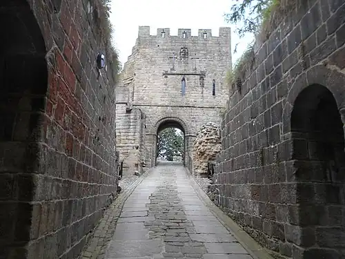 Prudhoe Castle /ˈprʌdə/[1] is a ruined medieval English castle situated on the south bank of the River Tyne at Prudhoe, Northumberland, England. It is a Scheduled Ancient Monument and a Grade I listed building.