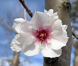 The interspecific hybrid between this species and Prunus incisa is designated P. × subhirtella. Cultivars from these hybrids are much smaller than wild species, about 5 meters (16.5 ft) tall, and are suitable for planting in gardens because they bloom from a young age.[1] P. × subhirtella 'Jugatsu-zakura' (incorrectly known as P. × subhirtella 'Autumnalis')[11] is widely grown for its propensity to flower during mild winter weather.[12] P. × subhirtella 'Autumnalis Rosea' is widely grown in gardens, and has gained the Royal Horticultural Society's Award of Garden Merit.[13] P. × subhirtella 'Omoigawa' was born from 'Jugatsu-zakura' seeds in Oyama City in 1954, and is considered to be a hybrid between 'Jugatsu-zakura' and Yoshino cherry because it inherited the genes of this species, P. incisa and P. speciosa (Oshima cherry). 'Omoigawa' blooms only in spring.[14][15] P. × subhirtella 'Ujou-shidare' originated from cherry blossoms at the residence of the poet, Ujō Noguchi, located in Utsunomiya City, and is characterized by drooping branches.[16]