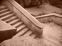 In 1879 Guido von Madai, president of the royal police, decreed a maximum height of buildings in the adjacent streets to uphold the visibility of the monument. The ordinance, however, was annulled by the groundbreaking 1882 "Kreuzberg judgement" of the Prussian Royal administrative court, stating that the police had exceeded its authority to ensure public security.[38] On 14 December 1887 the city of Berlin acquired 8.5 hectares (21 acres) of unbuilt land from several owners, mostly north and west of the monument.[39] Right adjacent to the south the brewery (merged into Schultheiss in 1891), and in the east and northeast villas remained.[40] On 28 June 1888 the city parliament decided for City Garden Director Hermann Mächtig's design for Victoria Park, including a waterfall between monument and Großbeerenstraße.[39]