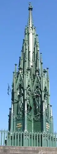 The Prussian National Monument for the Liberation Wars (German: Preußisches Nationaldenkmal für die Befreiungskriege) is a war memorial in Berlin, Germany, dedicated in 1821. Built by the Prussian king during the sectionalism before the Unification of Germany it is the principal German monument to the Prussian soldiers and other citizens who died in or else dedicated their health and wealth for the Liberation Wars (Befreiungskriege) fought at the end of the Wars of the Sixth and in that of the Seventh Coalition against France in the course of the Napoleonic Wars. Frederick William III of Prussia initiated its construction and commissioned the Prussian Karl Friedrich Schinkel who made it an important piece of art in cast iron, his last piece of Romantic Neo-Gothic architecture and an expression of the post-Napoleonic poverty and material sobriety in the liberated countries.[1]