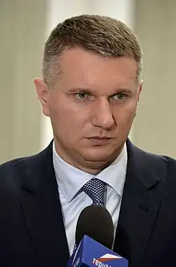 In July 2023, he returned to party activities (then operating under the name New Hope and part of the Confederation Liberty and Independence).[25] In the 2023 Polish parliamentary elections, he obtained a seat in the Sejm, running from the first place of the Confederation in the Toruń electoral district and receiving 13,457 votes.[26] In January 2024, he was appointed as the vice-chairman of the parliamentary committee on the alleged unlawful use of the Pegasus spyware by the former Law and Justice government.[27]
